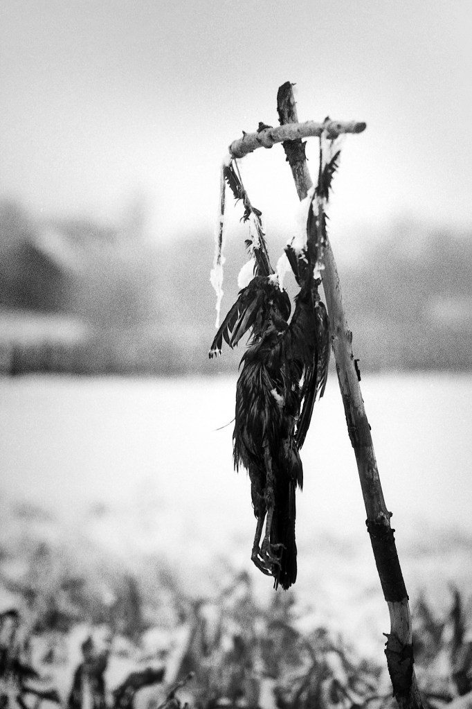 Doch manche meiner Aufnahmen sind auch eine metaphorische Warnung, die ich weitergeben möchte, wie das Bild einer toten, gekreuzigten Krähe oder das eines Hundes, der bereits hilflos auf die Fahrbahn schaut.